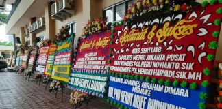 SAMBUTKOMBES POL.HENGKI HARIYADI banyak berdatangan karangan bunga memenuhi POLRES JAKARTA.PUSAT.