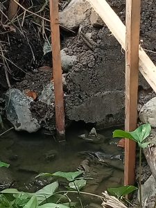Saat pelaksanaan pekerjaan pemasangan batu kali , kondisi lokasi sedang ber air, air yang mengalir yang